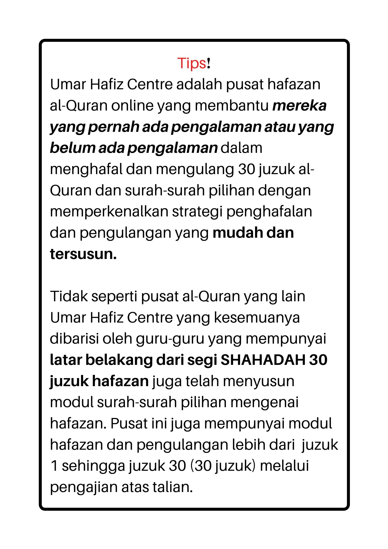 Apa kelebihan Kelas Hafazan Umarhafiz Centre ❓
